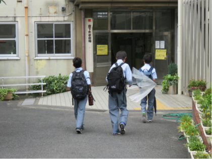 少し雨が降ってきました。2年生は「チャレンジ体験」3年生は「修学旅行」に出発。1年生にとっては学園天国!!今日も一日頑張りましょう!!