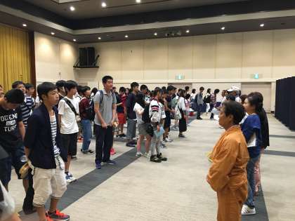 入村式(お世話になる民泊先の皆さんとの出会い)の様子です。