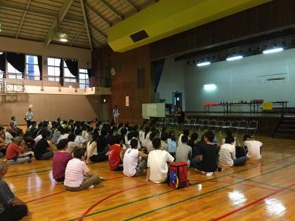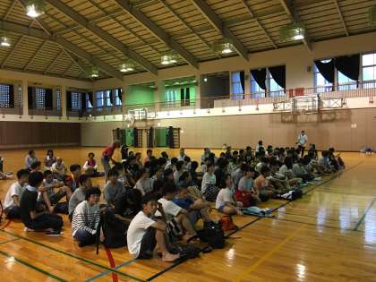 おいしかったBBQも終了し、次は近くの体育館におじゃまをして学年レクレーションです。実行委員が企画してくれました。