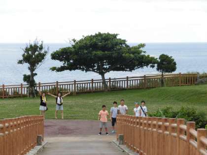 写真上:2日目夕方に集合した知念岬公園です。