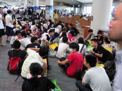 写真中:那覇空港で待機中,ちょっと疲れ気味かな。