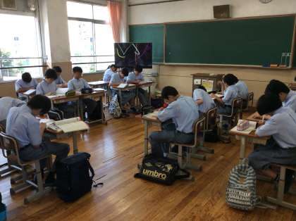 1年生土曜自主勉強会です。天気も良く、19人が参加して、まずは前半、9時から9時50分まで、フルに頑張ってました。自主学習する姿勢が培われてきて嬉しいです。