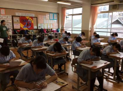 1年生2限目は国語です。聞き取りテストから集中。この後、美術のテストがあり、第2回は終了です。お疲れさん。