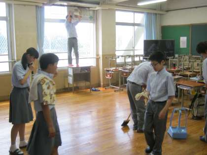 みんなで大掃除している様子です。