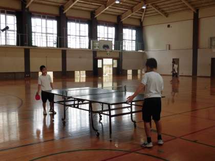 ビデオ見ながら頑張る卓球部です