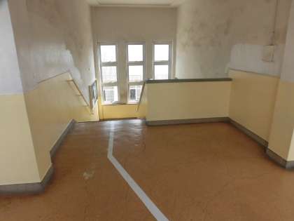 中央階段の壁面下部のペンキ塗装が
