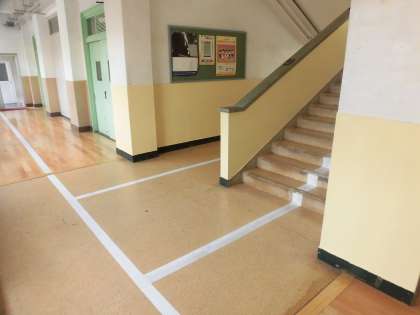 中央階段の壁面のペンキ塗装は,