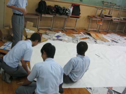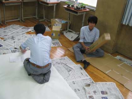 3年生 学年劇の大道具製作の風景