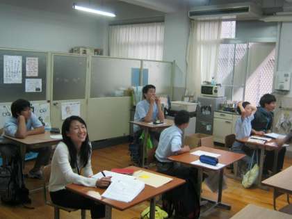 英語の授業を元気に受けています。