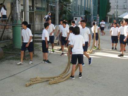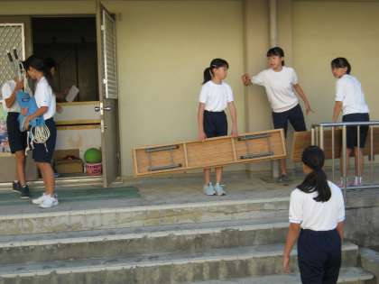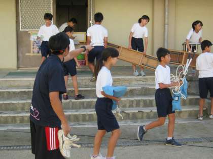 早朝から、生徒達が登校し、教職員と共に準備をおこなっています。