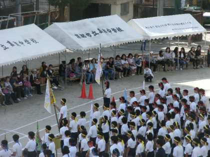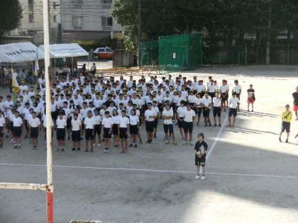 校歌斉唱、学校長の挨拶で開会式が始まりました。