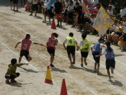 男女混合リレー、1年生の様子です。