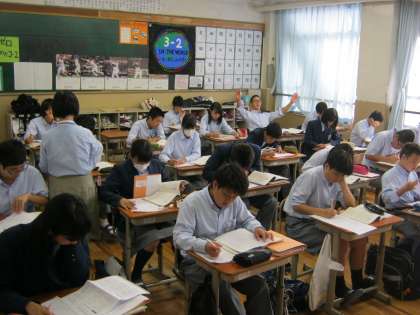 1組は6限英語の授業、2組は2限国語の授業です。