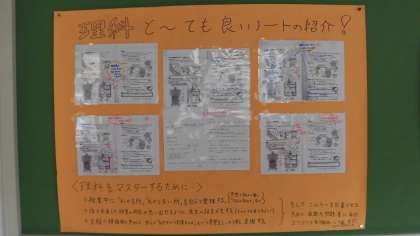写真上:廊下に掲示中の1級ノート(理科)
