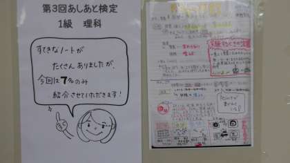 理科の1級のノート紹介が廊下に掲示されて