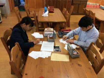 昼食時に選挙管理委員会が行われ、選挙管理委員が自クラスの生徒全員の投票券交換用紙を作りました。