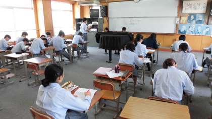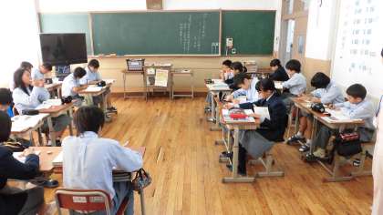 写真下:1年4組「社会」