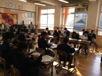 1年生の朝学活終了後の様子です。提出物や1限目の準備を開始しています。