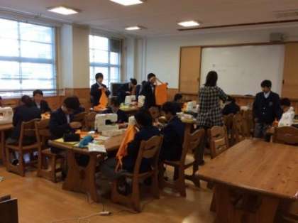 1年生の授業の様子です。家庭科は裁縫の授業でした。英語の授業では発表の後、クラス全員で「からの・・・」締めがあったり、もう一つのクラスでは、この土日に結婚記念日だったらしいお父ちゃんお母ちゃんや、誕生日を迎えた先生と生徒にbirthday songを歌ったりしました。