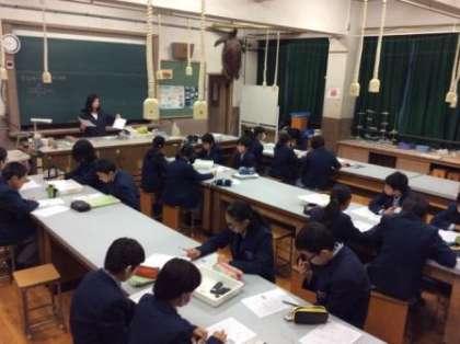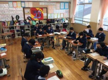 1年生の1時限目の様子です。ちょっと上から撮ってみました。2組国語、3組国語、4組理科。