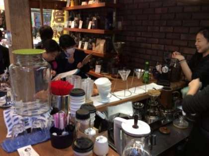 三条会商店街では、各々が与えられたお店に行き、突撃インタビューをしました。休業や忙しい時間帯ゆえ断られたりして、予定していない店舗に突撃するものも居ましたが、見事全員がグループの力でミッションを時間内に達成して帰ってきました。