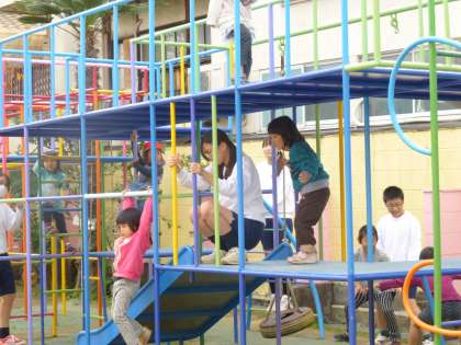 園庭では、園児のみなさん、中学生、