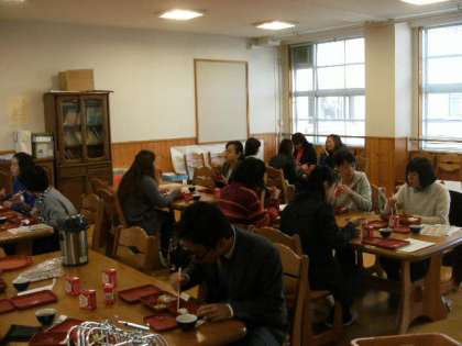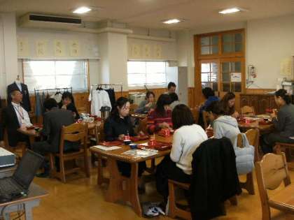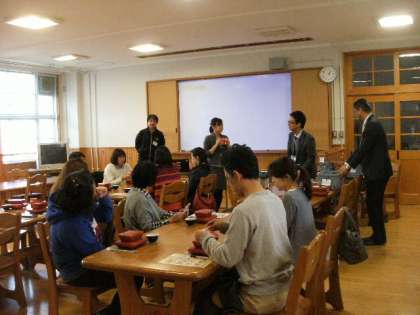 給食試食会では、京都市教育委員会・体育健康教育室より講師の先生をお招きし、給食のシステムや献立ついて、詳しく、丁寧に説明していただきました。