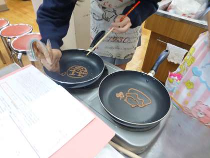 みんな協力し合って、「パンケーキ作り」に挑戦です。