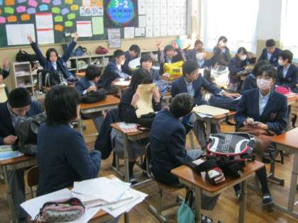 1日の振り返りや、配布物、諸連絡などをおこなっています。