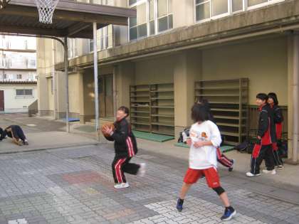 男子バスケ部、女子バスケ部、バレー部の活動です。
