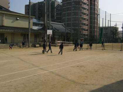 グランドでは、暖かい日差しの中、