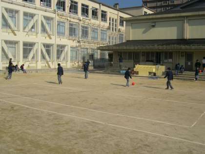 グランドでは、3学年が自由に昼休みを過ごすことができます。