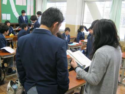 2年生の休み時間中の様子です。授業の準備をしたり、わからないところを担当の先生に聞いたり、クラスメイトとたのしく会話をしたり、各々リラックスして過ごしています。テスト勉強は大変でしょうが、気持ちにメリハリをつけて頑張っていきましょう!