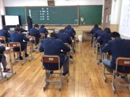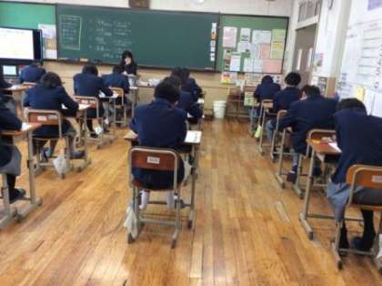 一年生、テスト2日目の2限目 社会の時間です。弥生時代と縄文時代の土器・・・区別つくかな。