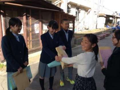 年末に嘉楽中地生連で作成した「リーフレット」と今年度の生徒会の一年を冊子にした「ひまわり」を渡しに、紫野小学校に行ってきました。リーフレットは全校生徒一人に一つ、ひまわりは各学級に一冊渡しました。