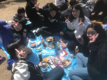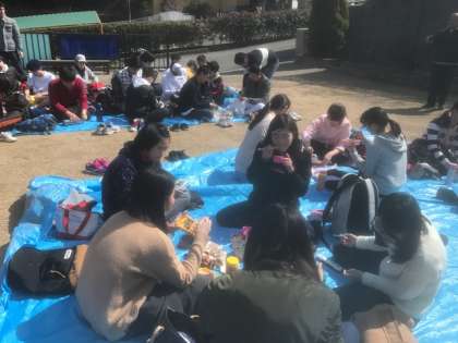 ぽかぽか陽気のなか、みんなでお弁当を食べました!