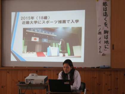 本日の6限、2年生では、近畿大学水泳部でリオデジャネイロ・パラリンピック日本代表選考会に出場して日本記録を樹立するなど、競泳選手として様々な場面で活躍している一ノ瀬メイさんに来ていただき、講演を聞きました。