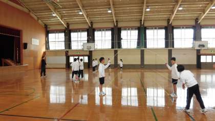 体育館で,2年2組が
