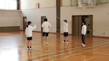 縄跳びのダブルダッチに挑戦中で,