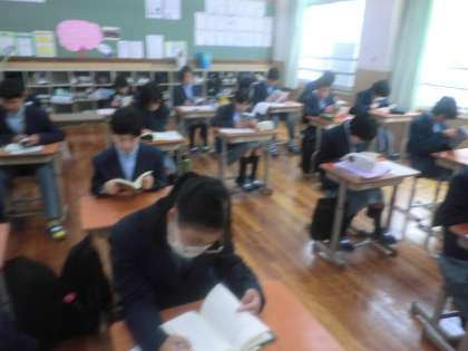 1年生、今朝の朝読書の様子です。習慣が定着してきました。シーンと静まりかえった教室の朝の風景です。