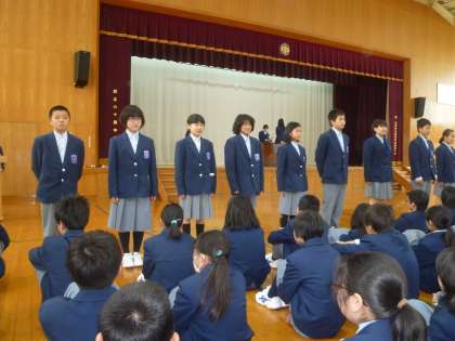学級の代表である、評議員や各専門委員会のみなさんが、全校生徒の前で温かく迎えられました。みなさん、一生懸命頑張ってください!