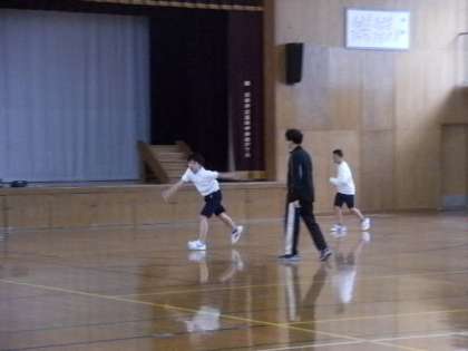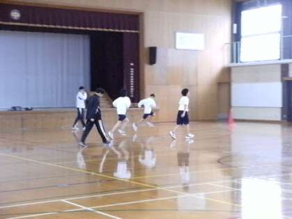 体育の授業で、体力測定(シャトルラン)です。頑張ってます!