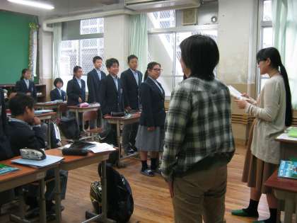 ALTの先生が来校されています。1−2での、その授業の様子です。ゲームも交えての楽しい英語の時間です。