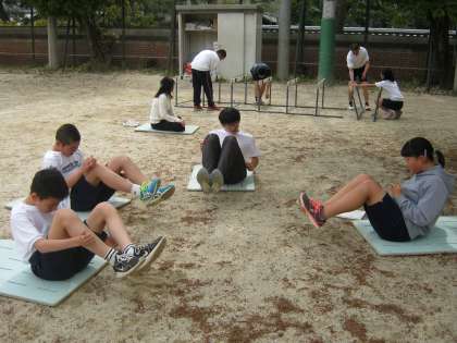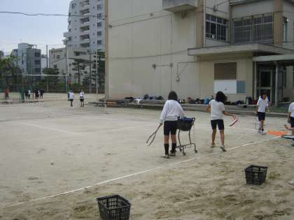 グラウンドでの部活動の様子です。担任の先生は家庭訪問中ですがどの部活動もがんばっています。