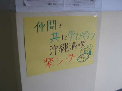 修学旅行スローガンのポスターが、3年生廊下や教室などに貼られています。修学旅行委員が制作しました。こちらは1組の入り口に掲示してあるものです。
