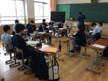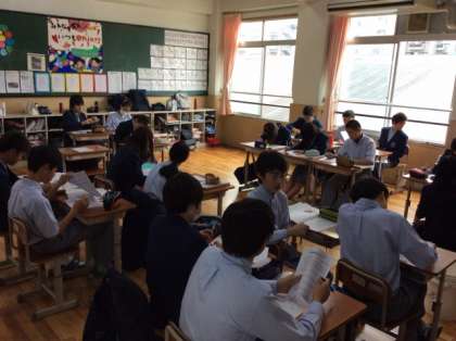 二年生の総合は生き方探究チャレンジ体験の事前学習。各グループに分かれ、事業所への行き方を調べたり、電話アポイントの取り方を練習したりと和気あいあいとやってます。
