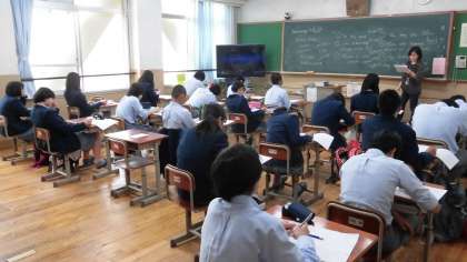 写真中:3年2組(英語)
