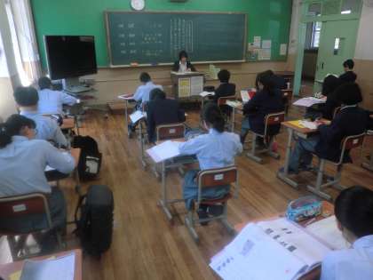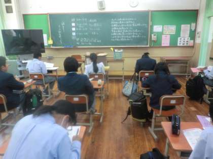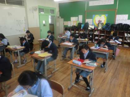 テスト中の諸注意を聞き、1時間目は自主学習に取り組んでいます。