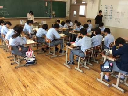 2年生授業の様子です。2組英語はALTの先生が来てくれました。未来のことを表現したり、第4文型の練習をしたりしました。3組国語はリスニング対策をしました。4組技術は植物の栽培に必要な条件について学びました。