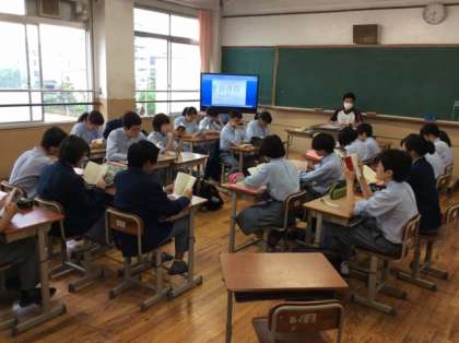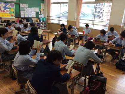 2年生、朝読書の様子です。初めての本を読んでいる生徒や「もうこの本読むの4回目」っていう本を読んでる生徒がいます。